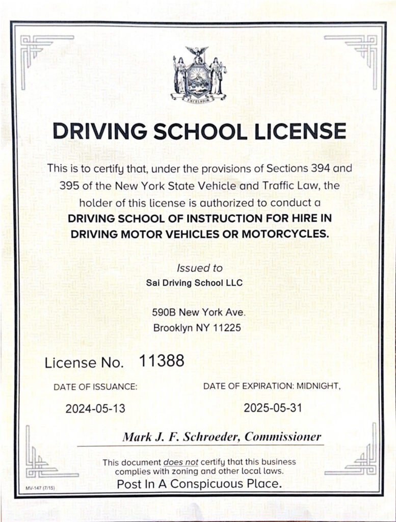 Welcome to our licensed driving school located in Brooklyn, New York. We pride ourselves on being an officially certified institution by the Department of Motor Vehicles (DMV).
